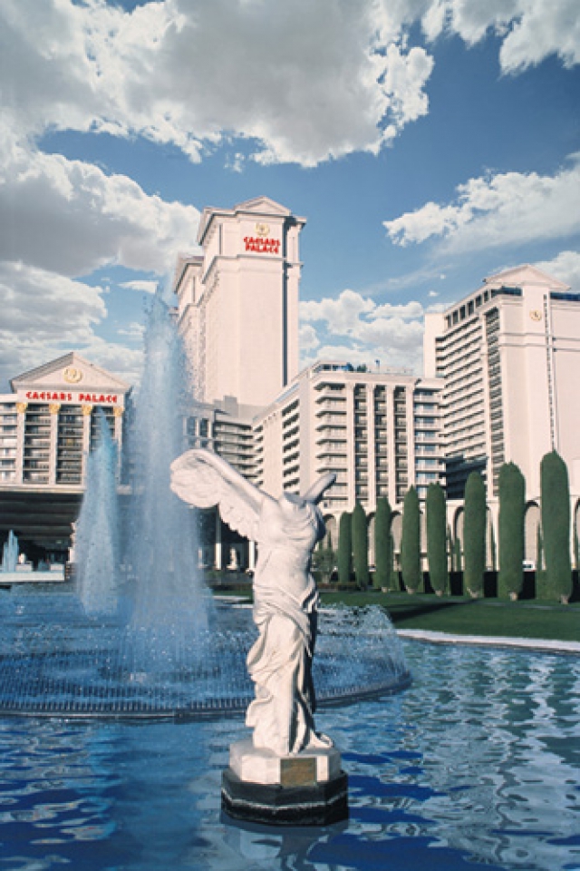 Although this particular representation of Nike is thought to commemorate a naval battle, she was also goddess of athletic victory (ergo the feponymous footwear) and of other contests -- hence her likeness as a sentinel at the Strip-facing fountains of Caesars Palace. This version of the statue was hewn from Carrara marble by Italian sculptors and shipped to the United States for the opening of Caesars in August 1966.