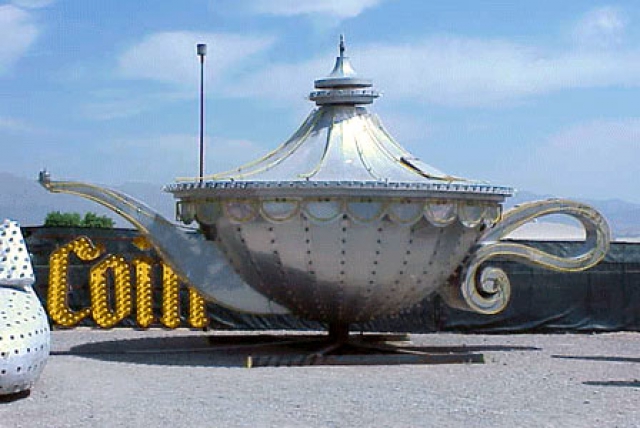 Finally, Milton Prell, the congenial L.A. investor who helped open the Sahara (and sold it to developer Del Webb a few years previously), bought the property for $16 million in the fall of 1965. He added a casino, a 500-seat showroom, and a gourmet restaurant and lounge, and refurbished the rooms. In order to open on New Year’s Day 1966, Prell completed the new resort, which he dubbed the Aladdin, in a miraculous three months. Aladdin’s Magic Lamp -- which stood atop 15-story support beams and featured 40,000 light bulbs -- fronted the new resort.