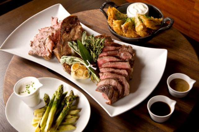 It's true. Chef Brian Massie's Brand Steakhouse serves an "Ultimate Steak" entrée available for two (40 ounces for $92), for four (80 ounces for $178), and for six (120 ounces for $267). It's served with potato gratin and two signature sauces and if you eat the 120-ouncer all by yourself, it's on the house. So far no has even attempted, they informed us.[*Note: This information has now been updated in light of a call from Brand. See below.]