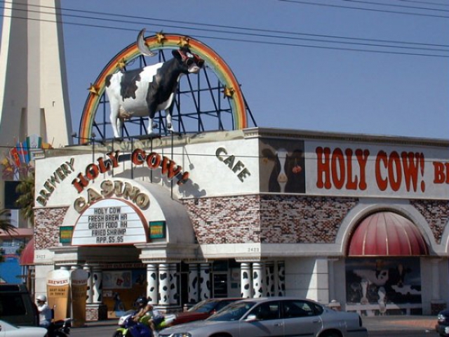 Foxy's Diner went on to become Foxy's Firehouse, a slot parlor with about 100 machines and that half-sized crap table. This in turn shut down in 1988 to become the Holy Cow! casino and microbrewery, particularly notable for the 14-foot sunglass-wearing Holstein cow that sat atop the entrance. It was a popular locals hangout owned by the Big Dog's Hospitality Group and featured a long dark wood bar with a 9-tap milk-can tower that poured the five house beers, alongside Miller Lite and nitrogen-pushed Guinness. The brewhouse and fermenters for the 10bbl Century brewing system were located on the second floor. The joint served decent bar food and was featured in the popular Discovery Channel reality series "Casino Diaries," (one of the subjects of which was being filmed playing there one night when a power failure struck, "vanishing" a couple of thousand dollars-worth of credits he had in the machine live on camera, but that's another story...)