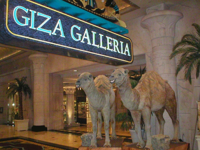 Originally located in an oasis area in the casino, they were later moved first to the casino lobby and then, in 2003, to the walkway between Luxor and Excalibur, where you recall seeing them. By this point, however, the camels had evidently seen better days, with the vocals often not working, and this was the era that saw Las Vegas move away from the over-the-top theming of yore. Then Luxor President and COO Felix Rappaport set in motion the ongoing "de-theming" of the property (although no one as yet has found a way to "de-pyramidize" it), explaining in 2009 that it was obvious "the competition has just moved by it. You didn't have to be a rocket scientist to realize that it needed to be freshened up."