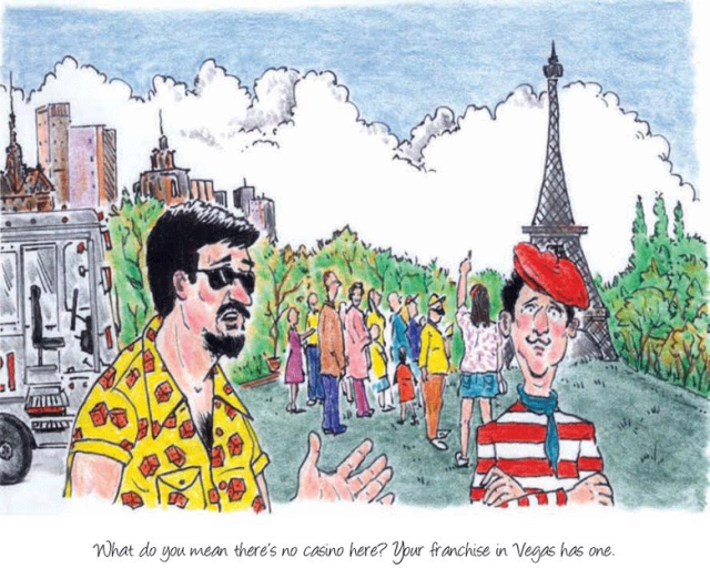 Pike and Margulies are syndicated cartoonists who live about five minutes from each other in Scottsdale, Arizona, and have been friends for 15 years. Along with their love of cartooning, they’re both casino enthusiasts and say they’ve left money in practically every single one in Las Vegas, usually at the blackjack tables. While these guys may not always know when to stand or double down, they can spot the inspiration for a funny gambling cartoon all the way from Buffalo Bill's to the Stratosphere.