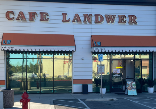 Cafe Landwer serves Israeli-Mediterranean-Middle Eastern cuisine for breakfast, lunch, and dinner. Breakfasts include the “Famous”: two eggs, chopped salad, tzatziki, guacamole & salsa, skordilia (thick Greek dip, like hummus), feta cheese, Greek yogurt with berries and granola, honey, and strawberry jam, and bread; and the vegan omelet, with chopped salad, guacamole, salsa, matbucha (tomato-chili dip) , baba ganoush, artichoke, cherry tomatoes,