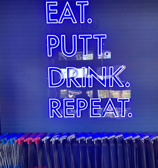 Atomic Golf has experienced well-publicized problems since it opened. The driving range faces west, so when the sun is setting, it not only gets very very hot, but you’re looking straight into it as you play; portable a/c fans and misters provide little relief. The lack of early business forced the venue to lay off 33% of its workforce.