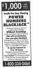 One ad flyer claims that users of the “Power Numbers Blackjack” system can “gain a mathematical advantage over the casinos without counting and win $1,000 or more per day.” The blackjack system, according to the ad, “is reasonably priced and can be learned by anyone in a few hours.” And, “for a minimal investment of money and time, you will have a sound way of being able to make serious money the rest of your life.”