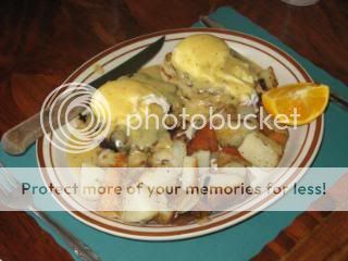 French toast, bread pudding style, with warm layers of brioche, custard and fresh fruit (apples) with maple syrup at Bouchon.