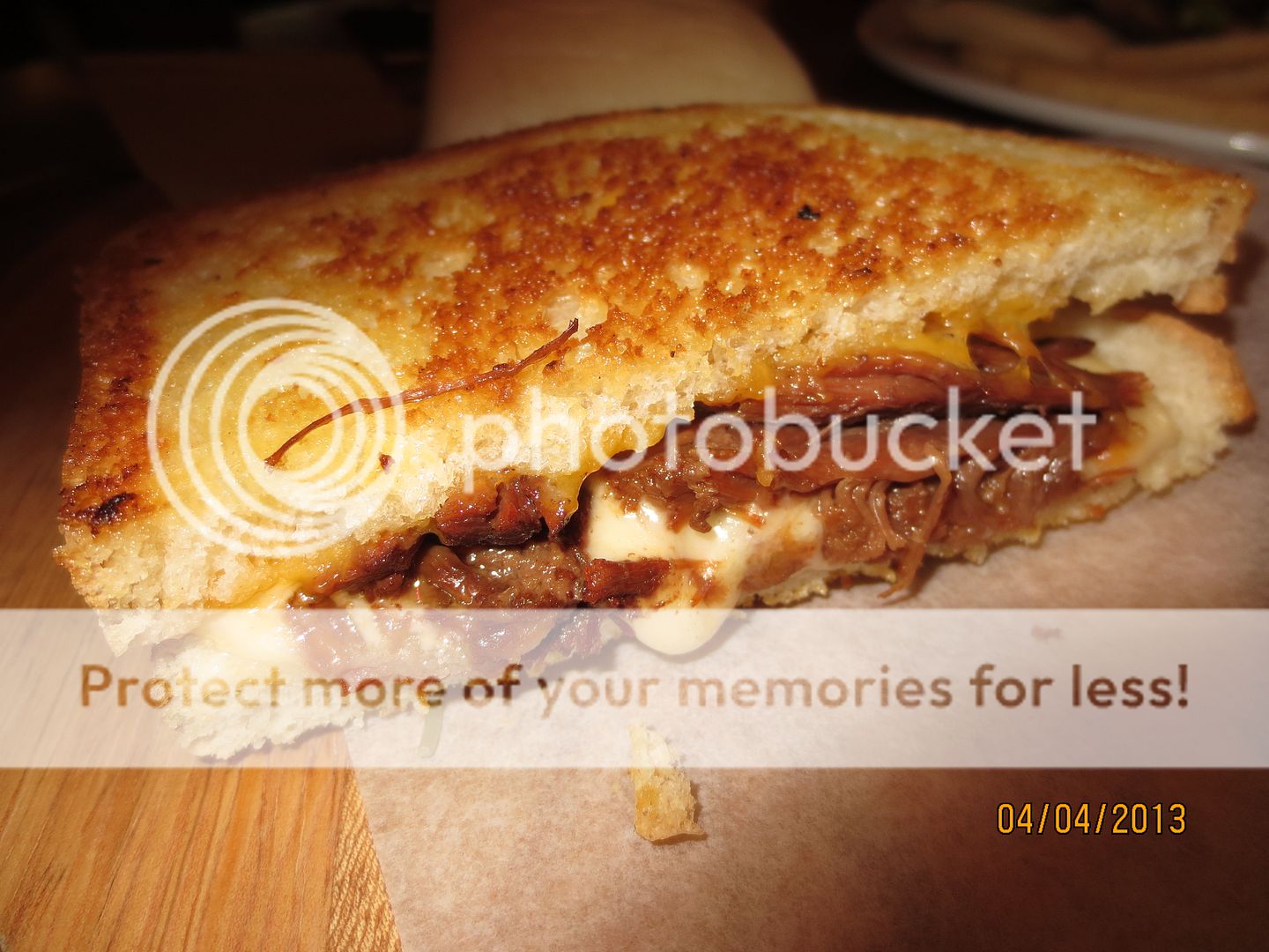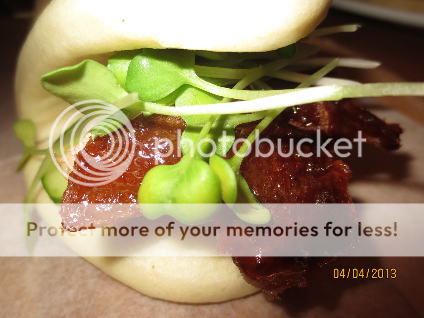 April 2013 The owner formerly operated the now defunct Great Bao and is serving up of a tasty mix of Asian and American food. We decided to share orders of Peking duck bao and a short rib grilled cheese sandwich. The former comes 2 to an order and is served with hosin sauce and some greens. The grilled cheese, served with a tomato dip and fries, had both cheddar and provolone cheeses on grilled buttered bread and proved to be a revelation. I am looking forward to trying the shrimp toast, Grandma's potstickers and/or short rib rice on a future trip. ($13.81, LVA, 3.5 Forks)