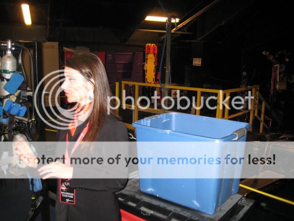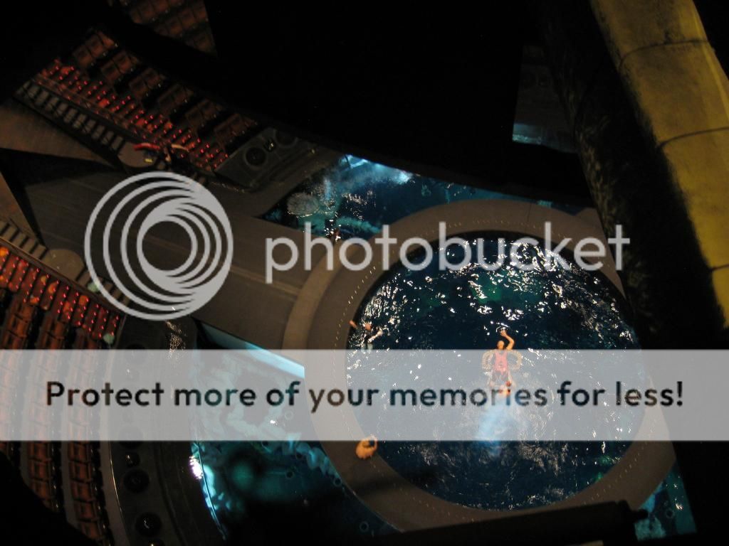 When we went down to the pool level it was about 90 degrees with (as expected) very high humidity. Once the show begins, the air temperature around the pool gets over 100 degrees. Why you ask? The cast members do not want to be shivering when they get out of the pool. In fact, they have these metal plates scattered around the pool entrances where the cast members lean against to stay warm. "There is not an ounce of fat on our cast members and thus with no insulation (i.e. - body fat), they need help to stay warm.." said our guide.