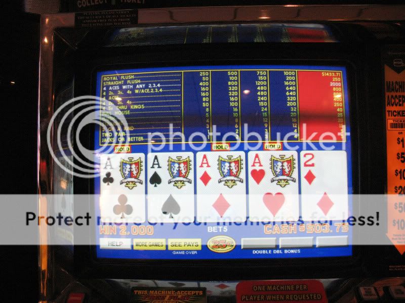 Mystic Lake Casino Hotel, Prior Lake, Minnesota - Super Five Play Bonus Poker - Quad Aces - $300.00 (was down to my last $10 for the day)