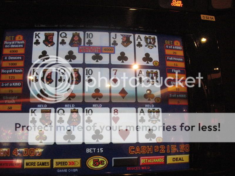 Mystic Lake Casino Hotel, Prior Lake, Minnesota - 50 Play Bonus Poker - Royal Flush - $40.00 (one card shy of a $2000.00 dealt Royal)