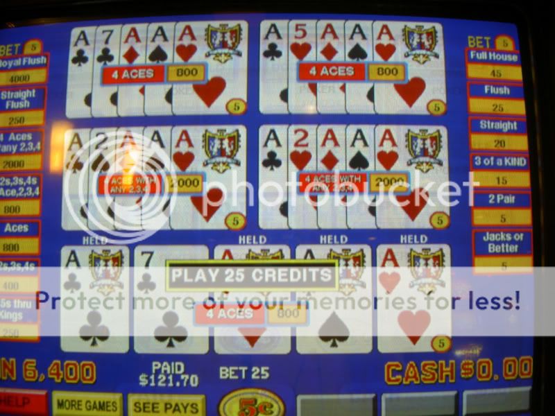 Mystic Lake Casino Hotel, Prior Lake, Minnesota - Super Five Play Bonus Poker - Quad Aces - $300.00 (was down to my last $10 for the day)