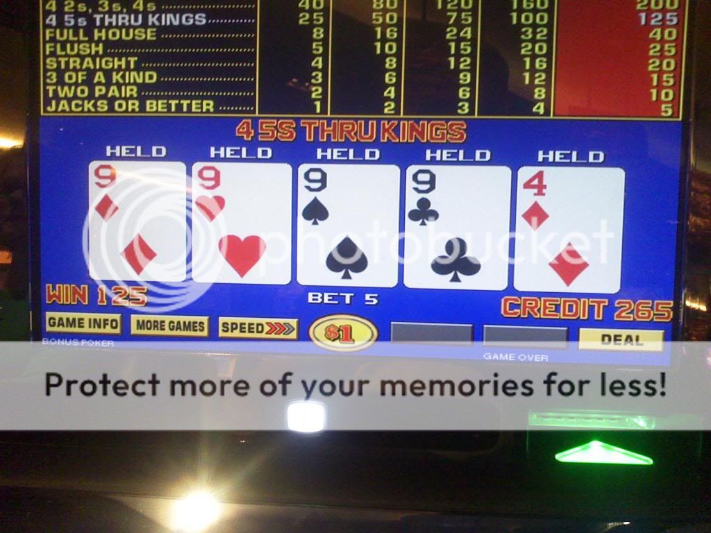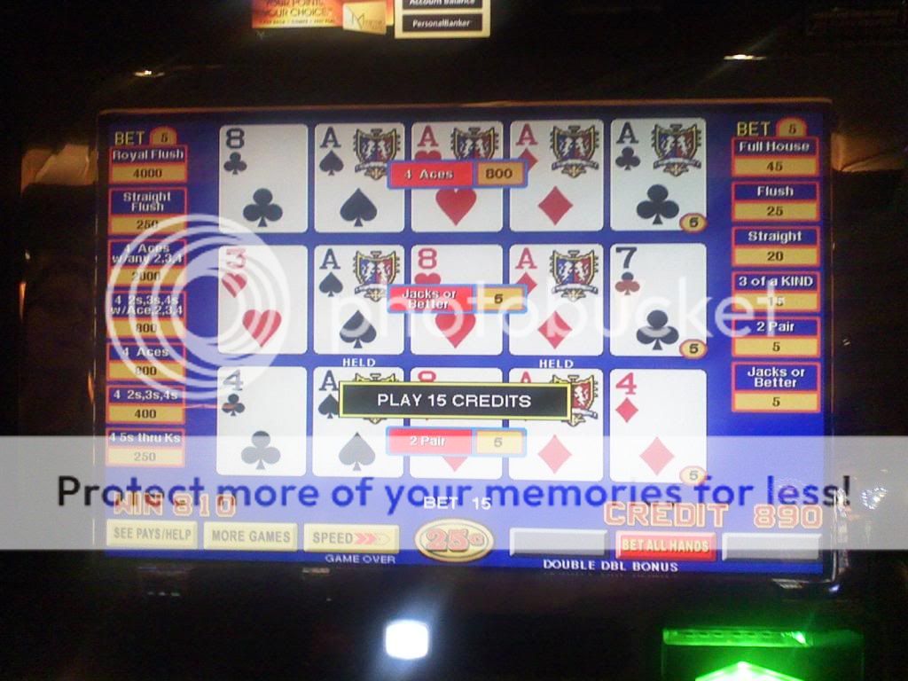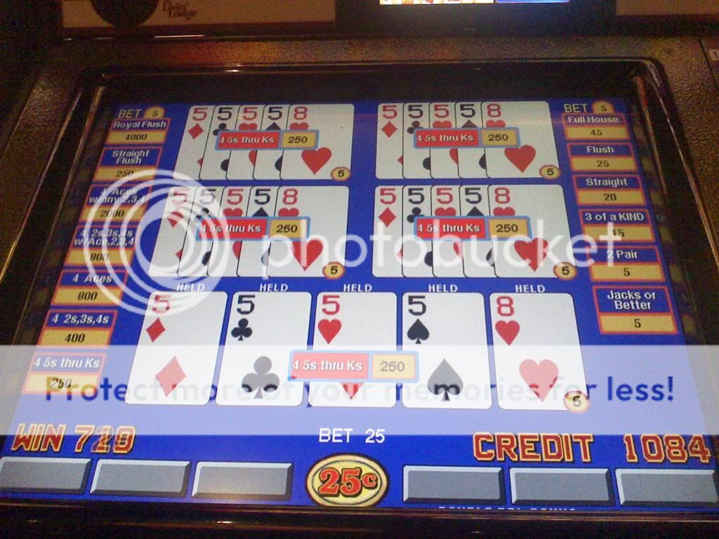 Lady friend hit this nice one... she had just come off of a 5 spot hit in single card keno playing 2 coins at a time for 400 bucks, and she cashed out and played 4-card keno and nailed TWO five spots in the same game! Incredible! This was 400 bucks too.
