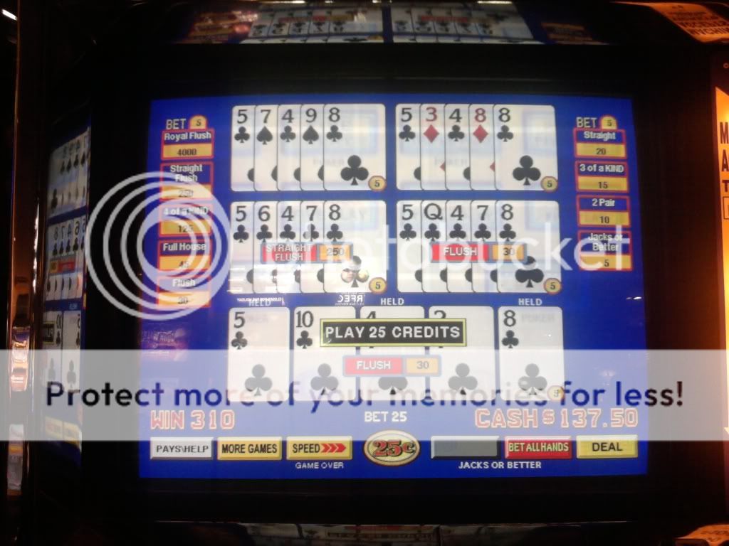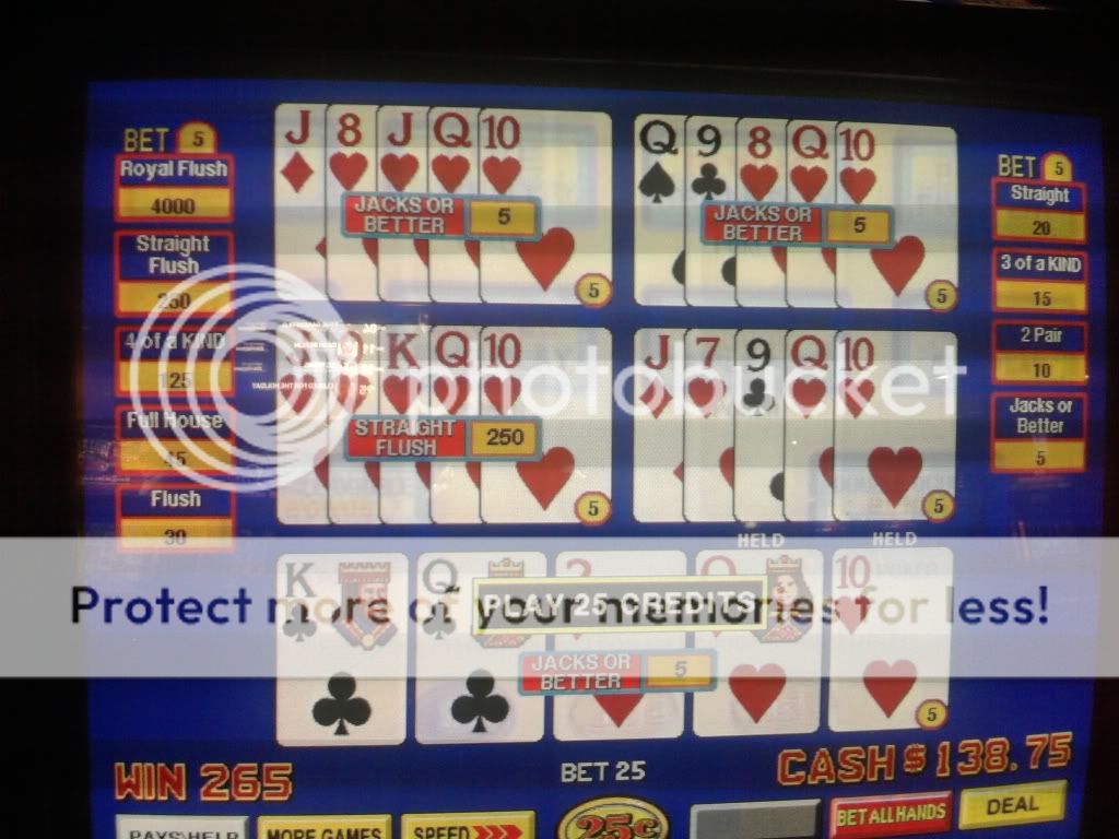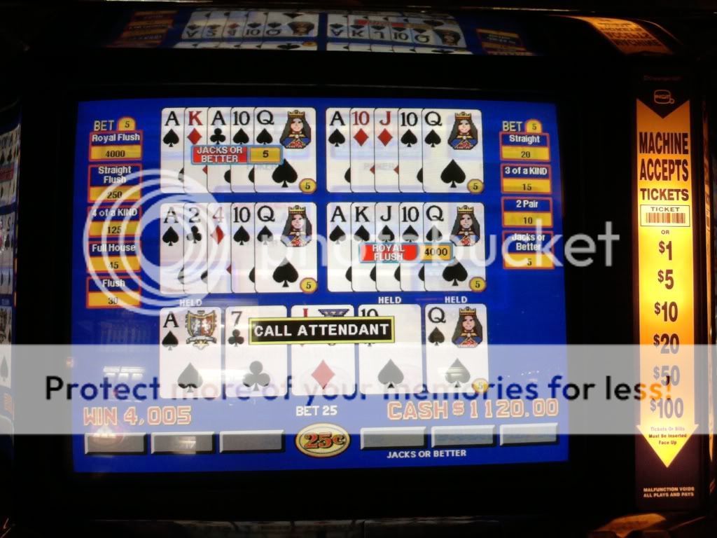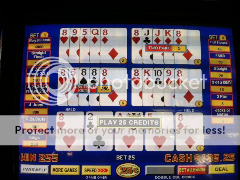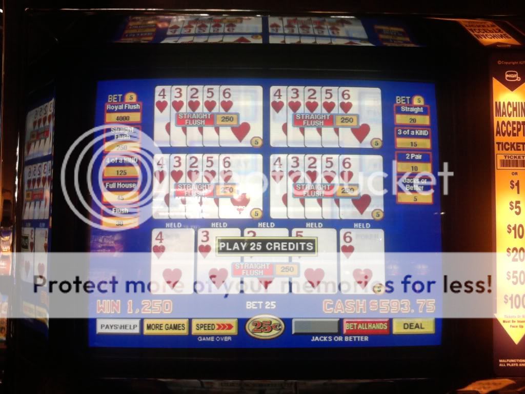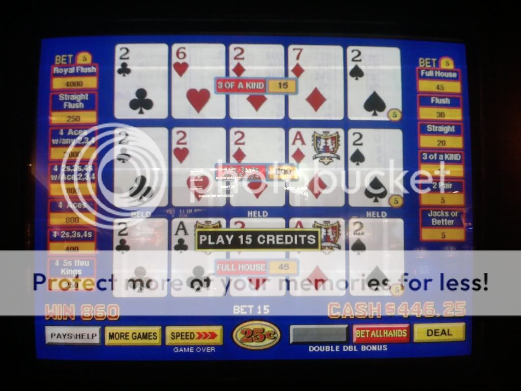 Just drew 3 kings to a single for a $100 on a Super Triple Play machine. I am enjoying the counter tickaway so I look to my left and see an older woman draw quad fours with a deuce. She holds the 4s and her hand moves to the draw button. I tell her that she shouldn't do that. That the hand pays $400 each because of the deuce. A woman on her other side backs me up on this. She tells me in a heavy eastern european accent that if she does this and loses money that I will have to pay it. I look at the other woman and she rolls her eyes. I told her to do whatever she wants. She had no clue even though I pointed to the paytable on the screen. Didn't have any idea how the game is played.