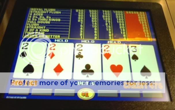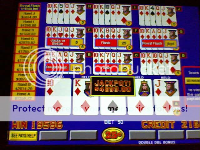 This was at the M-resort a few weeks back, as you can see, I was down to my last 2 coins left, when I hit this bad boy.., 6 out of 6 with two eggs cracked (4X multiplier) on Caveman Keno for $1000 bucks