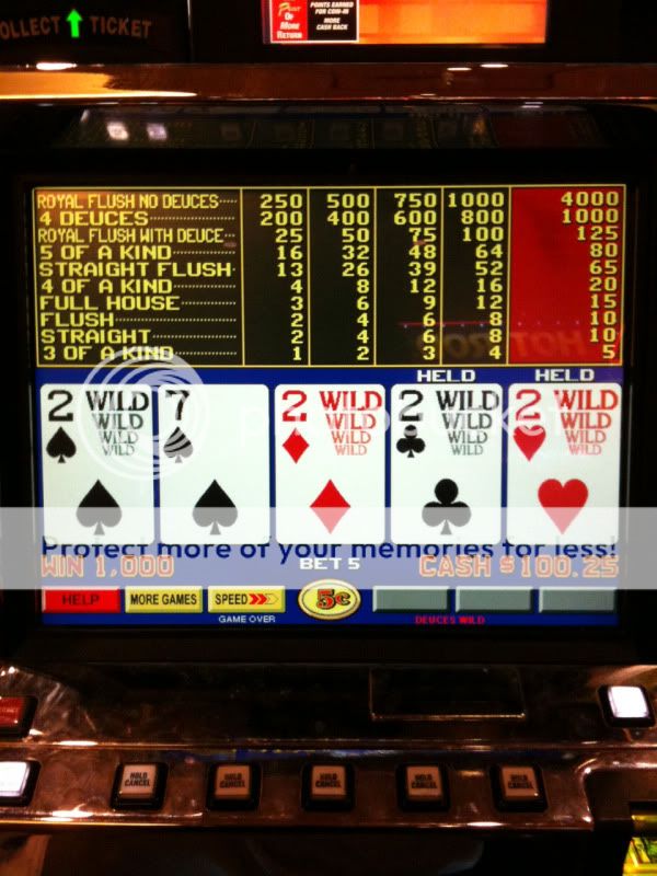These two 4 Deuces were at South Point on the same machine within about 10 minutes of each other, while waiting for a Bingo session to start. Regretting that I bumped it down to nickels.