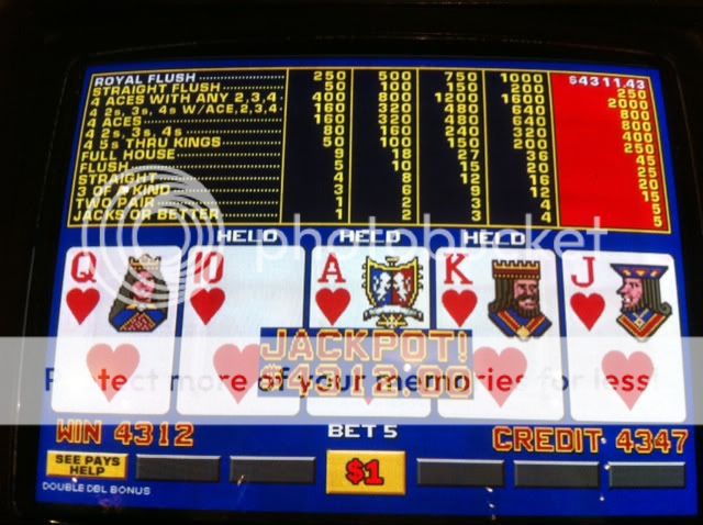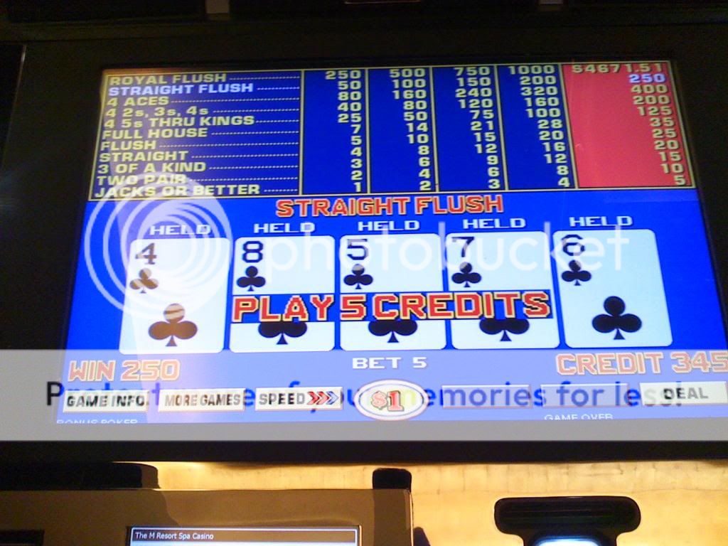This here was a straight flush over at the bank of $1 progressives