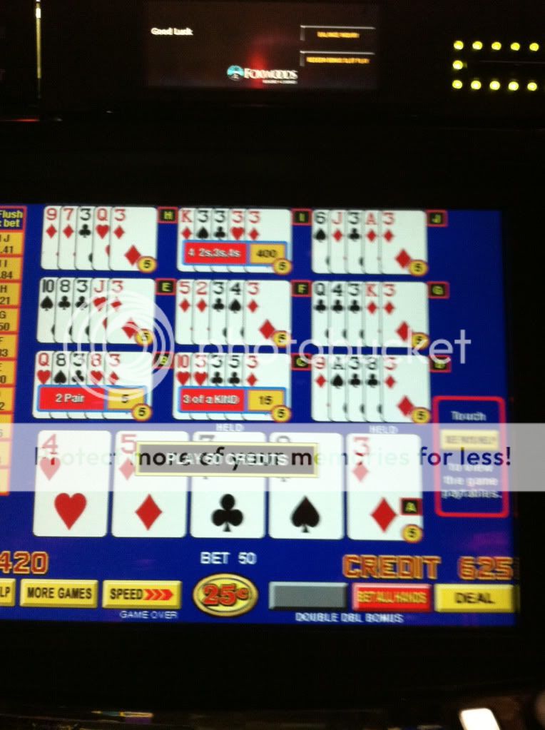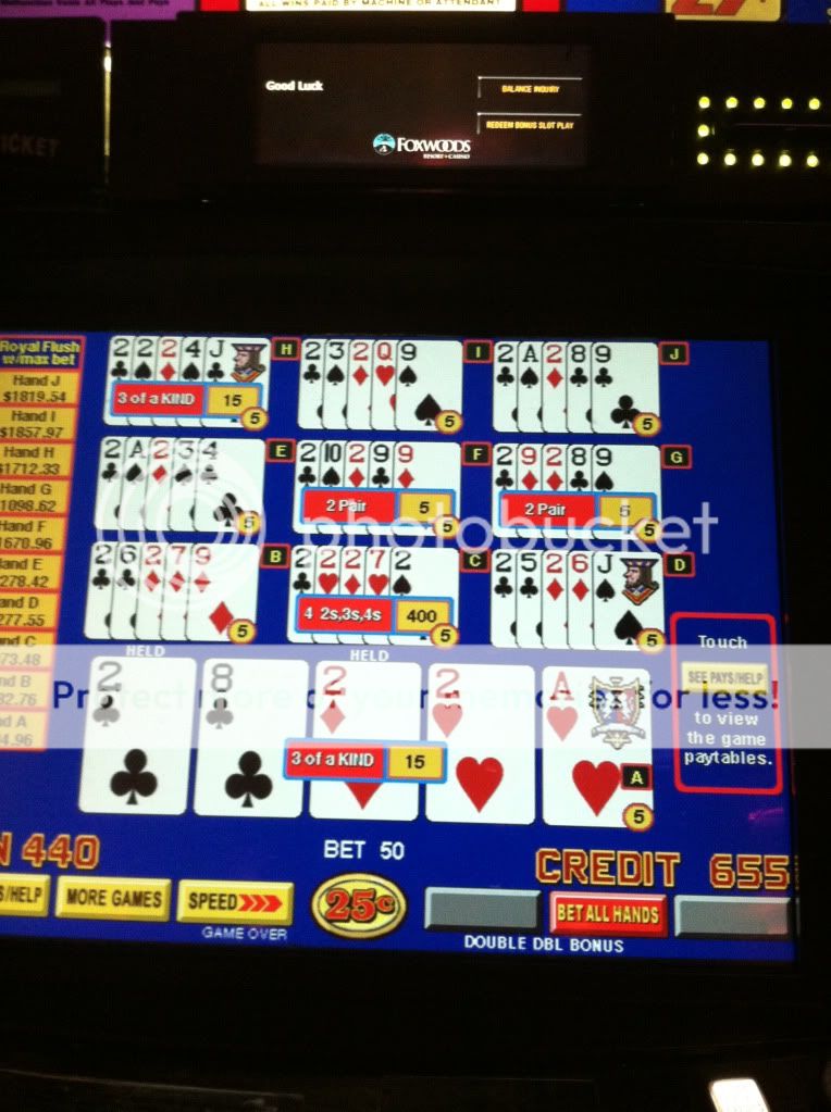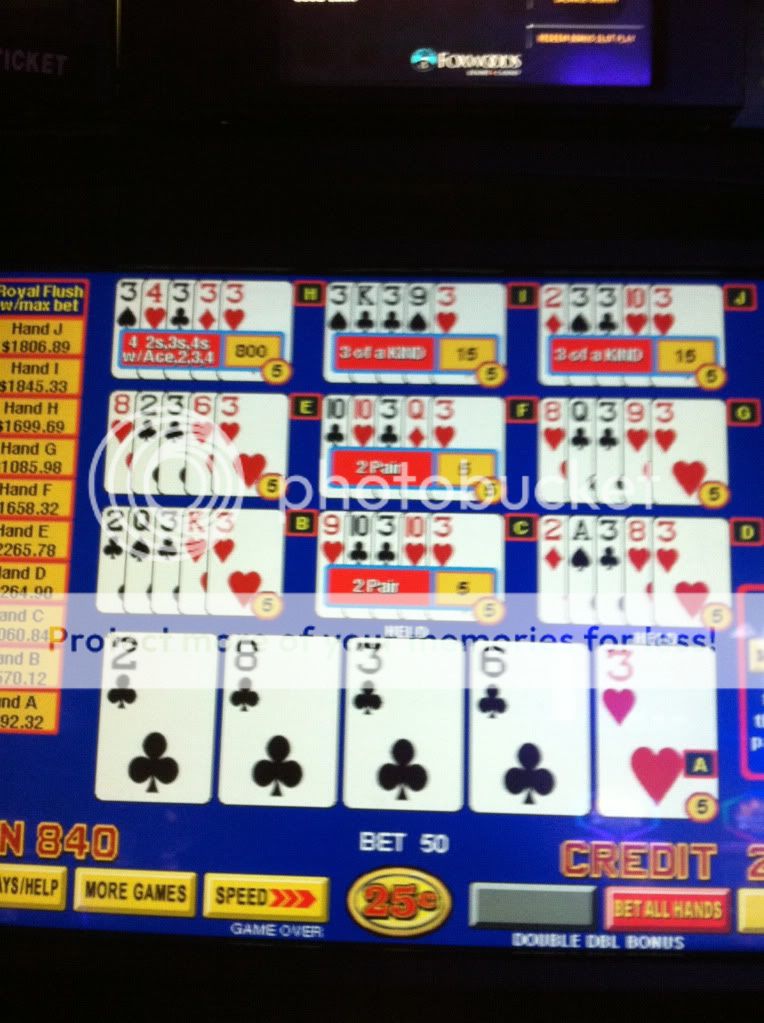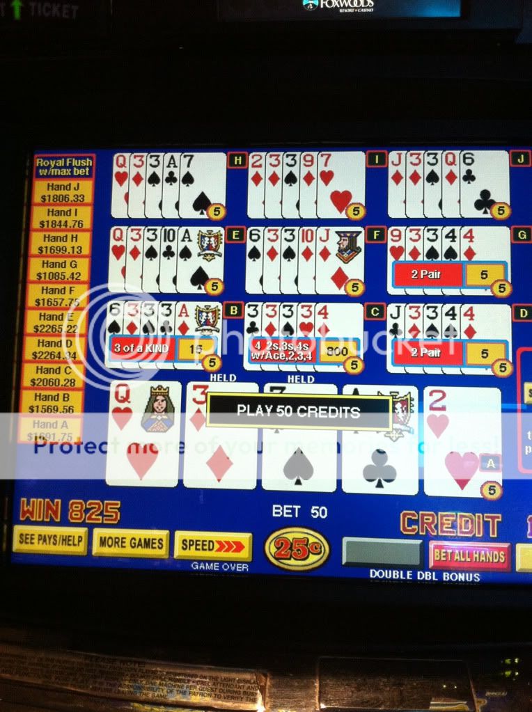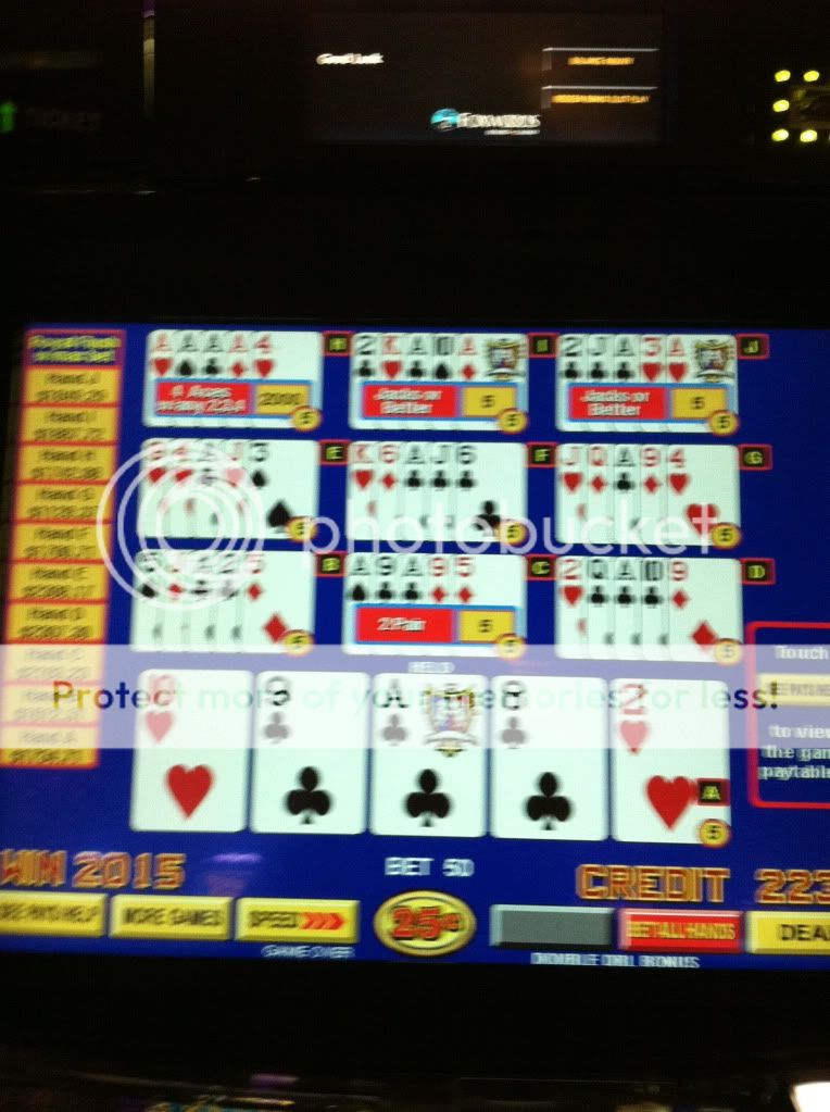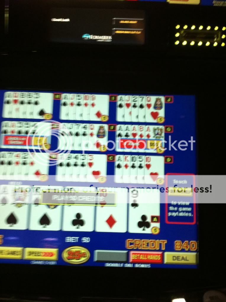 Myrtle Beach, SC gambling boat, vacationers been playing 1 quarter a hand all summer making that $1k progressive really get up there. Only reason I played this game was because of the high progressive, dealt 3 to the Royal: