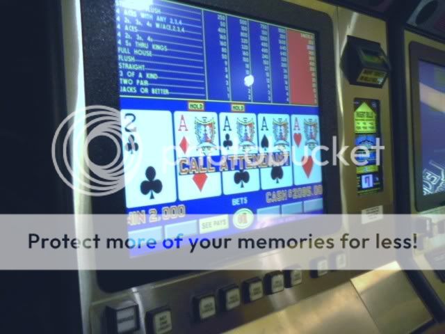 I thought that I would confess to a silly little habit when playing STP. When I hear the multiplier start to come up I lean toward the machine to hear for the little 'ding' indicating that a payable hand has been dealt. On this one I notice the guy next to me giving me a strange look as I leaned over. I explained the ritual as I looked up and gave an "oh Shit" when I saw the aces. The rest is golden.