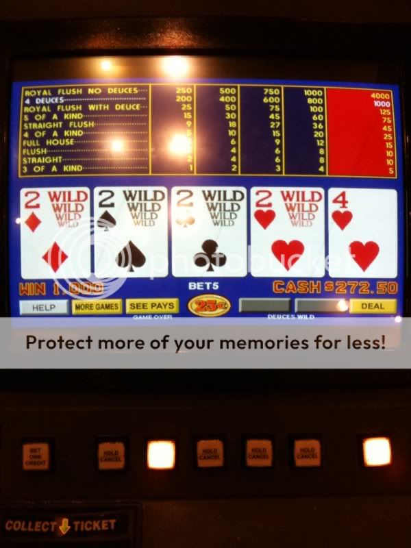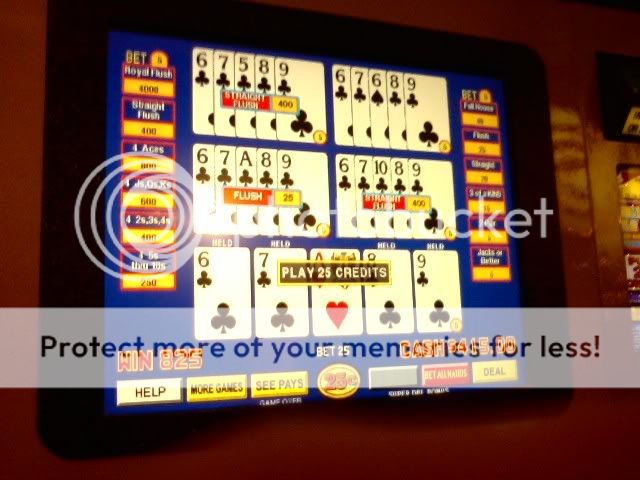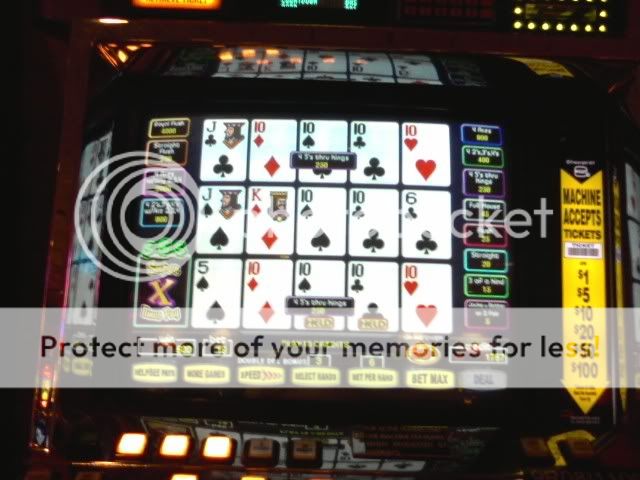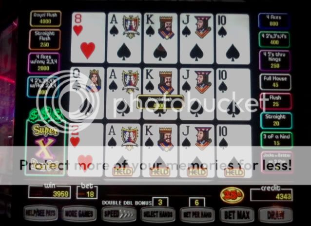 I was dealt a straight (Jack of diamonds) and of course went for the big payday. At first I forgot I was playing dimes and thought I won a grand. Aah, well, $400 is $400 and a Royal is a Royal.