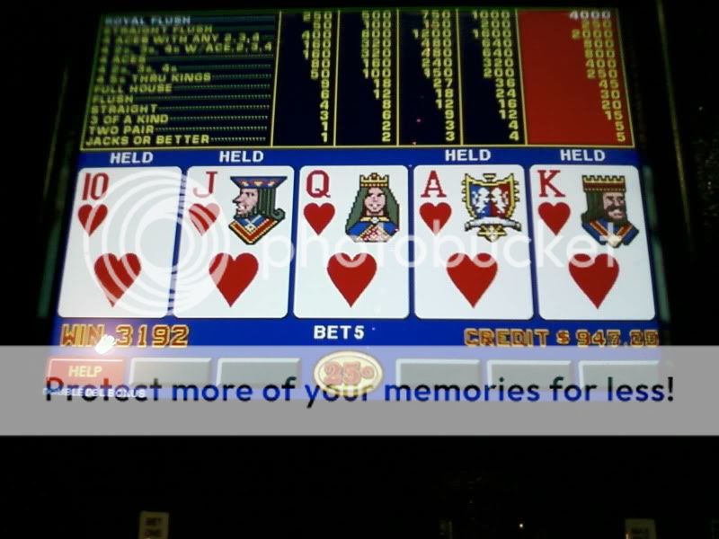Heres a pic of my second ever royal. It was at Harrah's New Orleans. If you notice I was so excited I took the pic before it had finished counting up the credits lol.