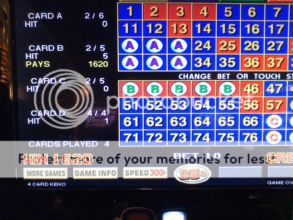 She was dying to play keno, so we went to the hot spot for a little 4-card action.