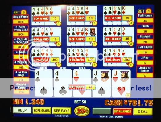 I was up $500 after the deuces so I tried my favorite 10play for TDB quarters. This was somewhere in my 1st ten hands. Very lucky...guess I would be asking too much just to have one kicker for my trouble.