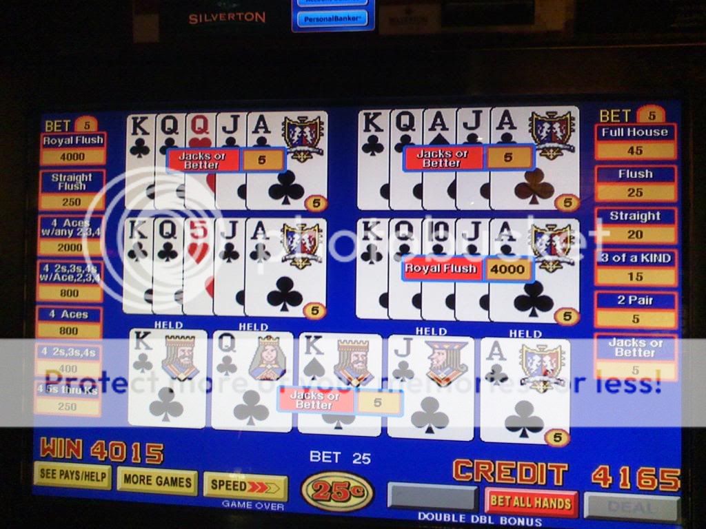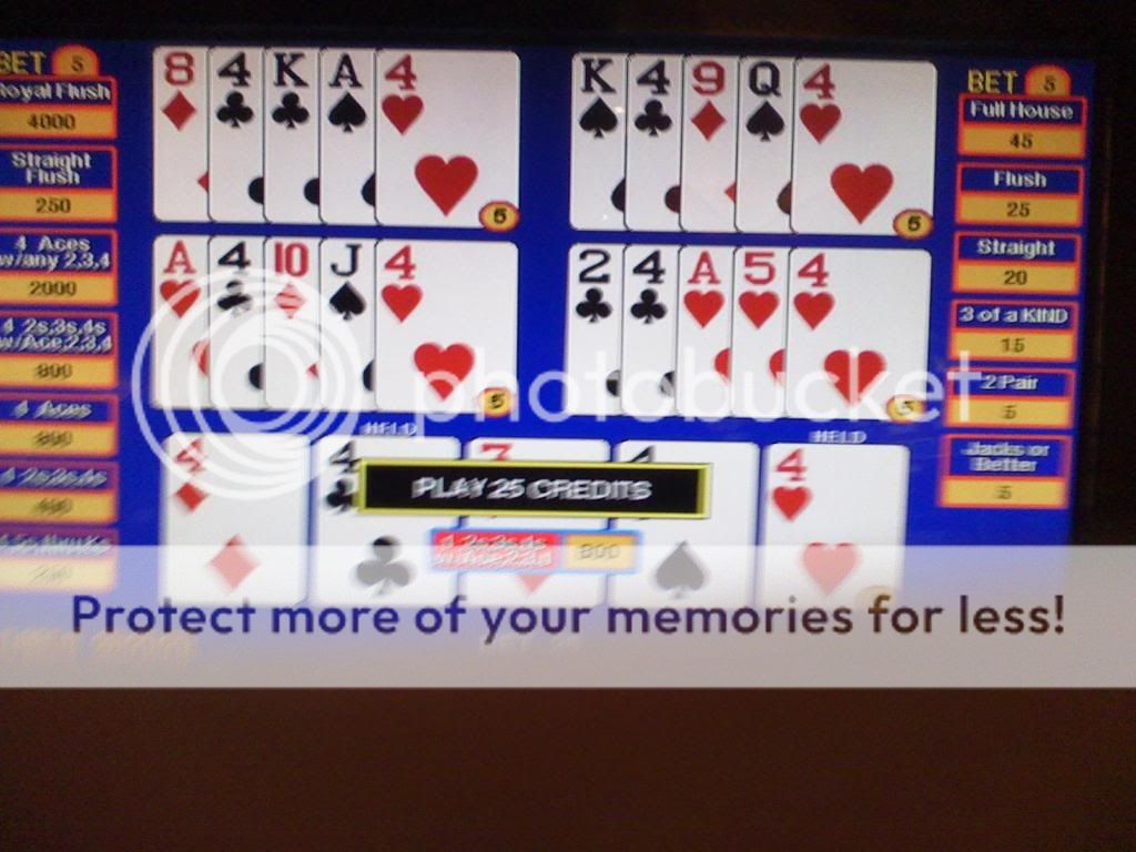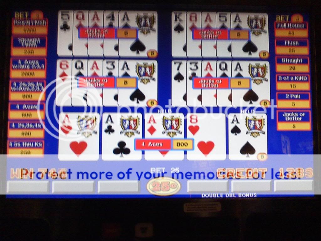 4 aces no kicker on the same machine a few hands and a cash out later (sorry its blurry)