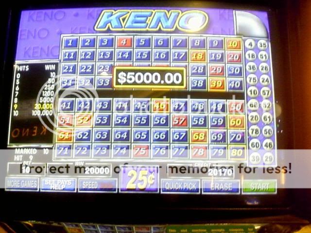 so i turn around and there is a video keno machine. oh fine, i put the $100 in only i dont stop after one or two hands to get some change. i keep going. and going. degenerate gambler here, get your degenerate gambler here......