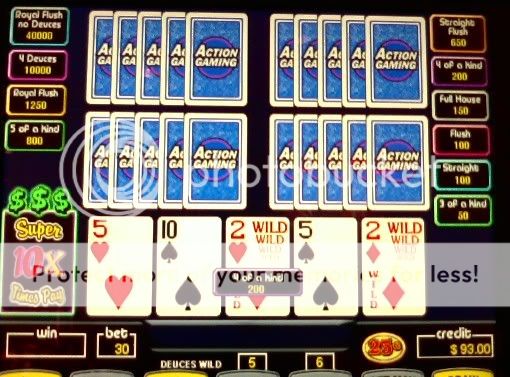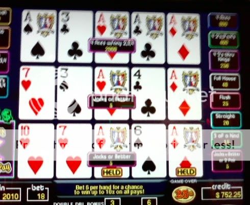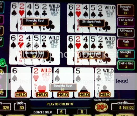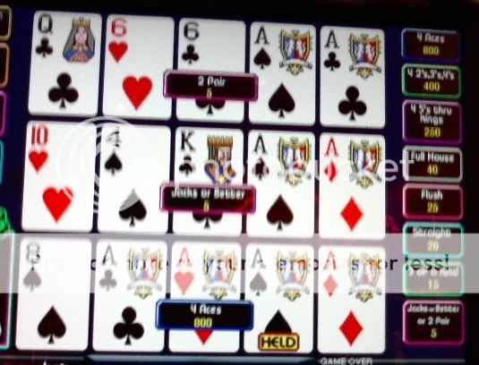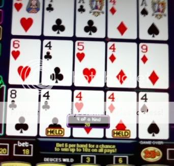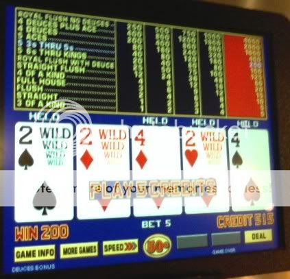 Thanks everbody. I'm on a really good run in the last 6-7 weeks. The math came back to reality for the 1st $400 I put in the STP machines today. Not a single quad and very few multiplier hands. So I switched to deuces but forgot to tell the machine.