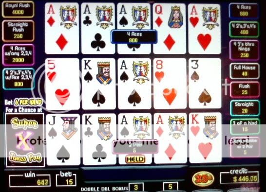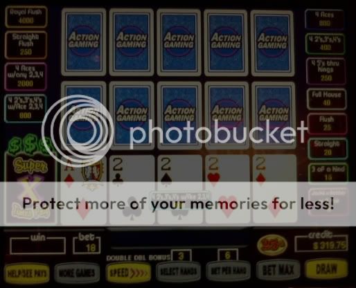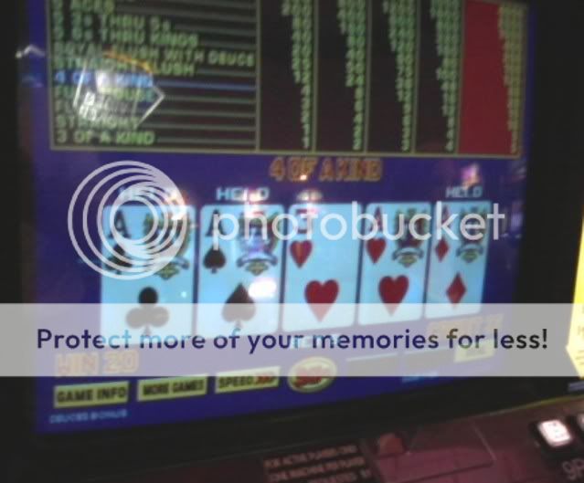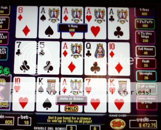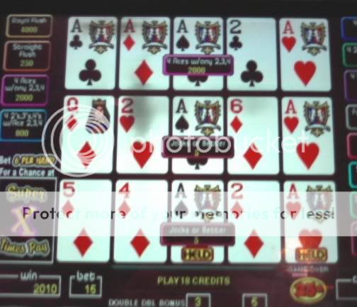 The string of 4 aces were in one 30minute period. All were on the top line and w/o a kicker. One was a pair to a pair. Two were drawing 3 aces to a lone ace. Never had a string like that.