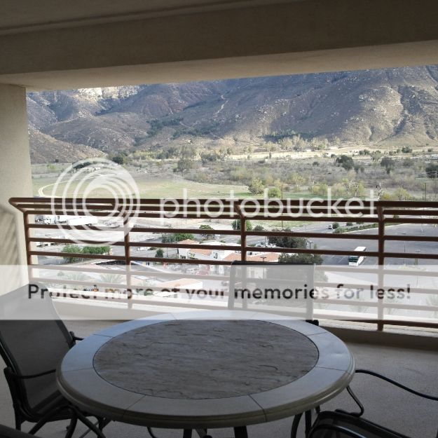 The suite has a large patio with furniture overlooking the nearby mountains