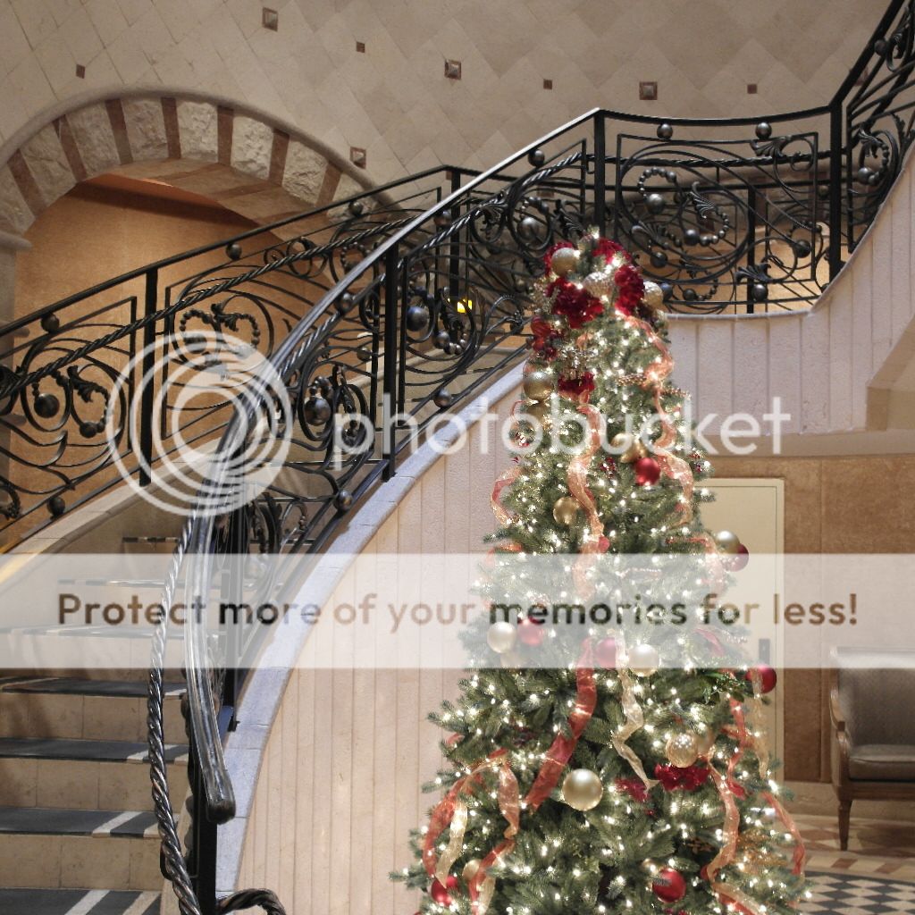 Inside to Tivoli building is a long spiral staircase where Christmas decorations are beginning.