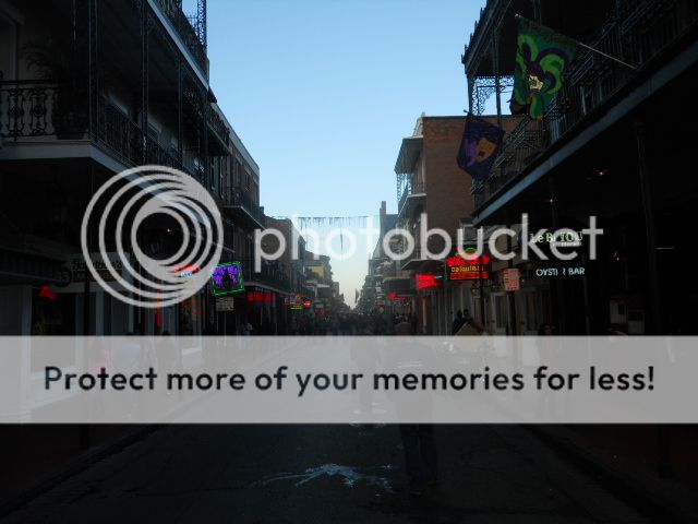 My son in the foreground at the beginning of Bourbon Street.