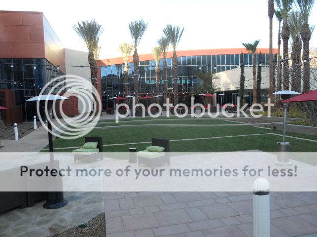 The patio area next to the new conference building.