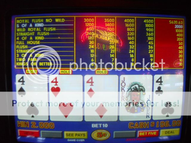 Things moved along. At $5 per deal, to reach $25,000 in play is going to take a while and it did. I was dealt four-to-the-royal once and caught only one. It would be the last time I was dealt four-to-the-royal again all day. After about an hour, I had lost what I had and switched games to Bonus Deuces Wild which on this game pays 15 for a straight flush. I was soon dealt quad 3s with a deuce which in this game is good for $200. It was sad because had I been playing Super Double, it would have been good for $400 or Double Double when had been $800. But that’s how it goes.