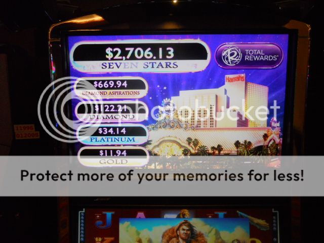 I headed back to the Quad as my tournament was about to begin. This morning there were 25 players. I made it to the final table and was the first one out when I was short stacked and my pocket 7s where crushed by pocket Kings. So—I’m still waiting for my first cash at the Quad. I’ll keep trying—as I said, I like the tournament and it’s certainly cheap enough for two hours of play. I took one more picture on my way out of the Quad. Earlier in this trip, I had mentioned that I had won a progressive on a penny machine and that the progressive was set up with Caesars. This is the only place I know that has this.