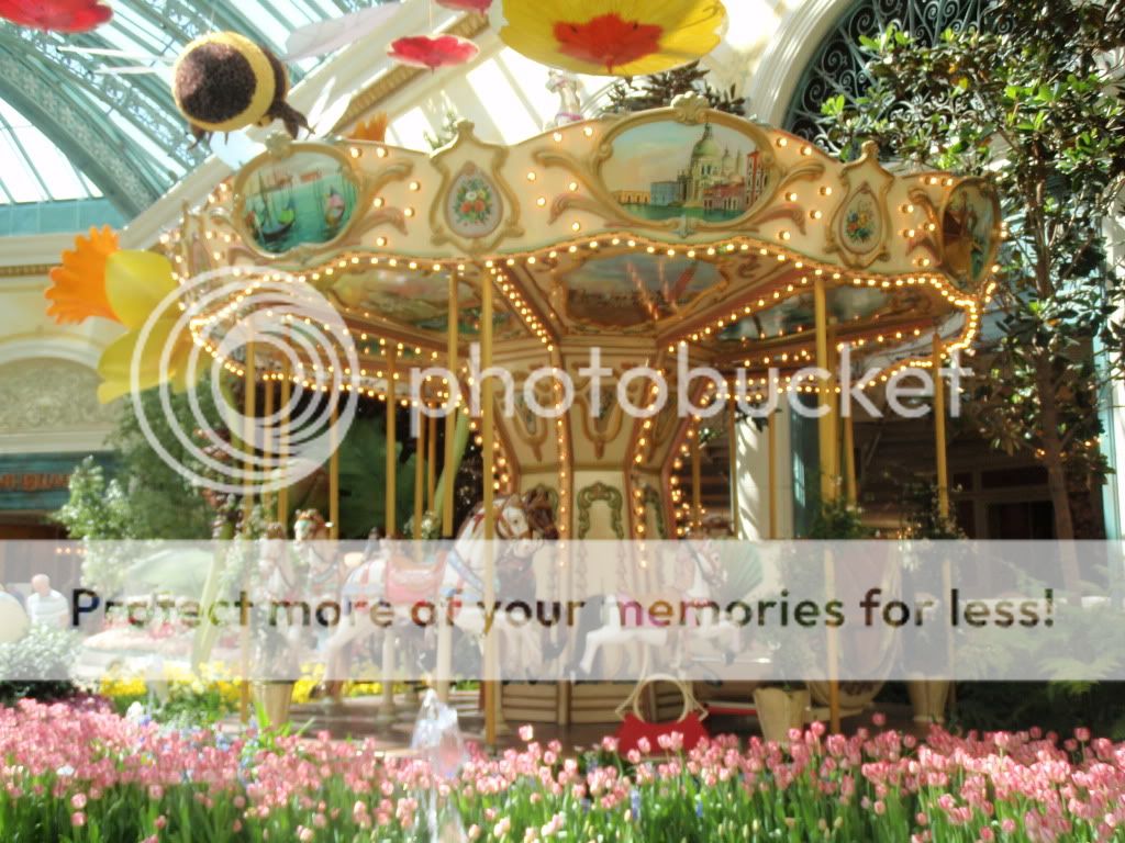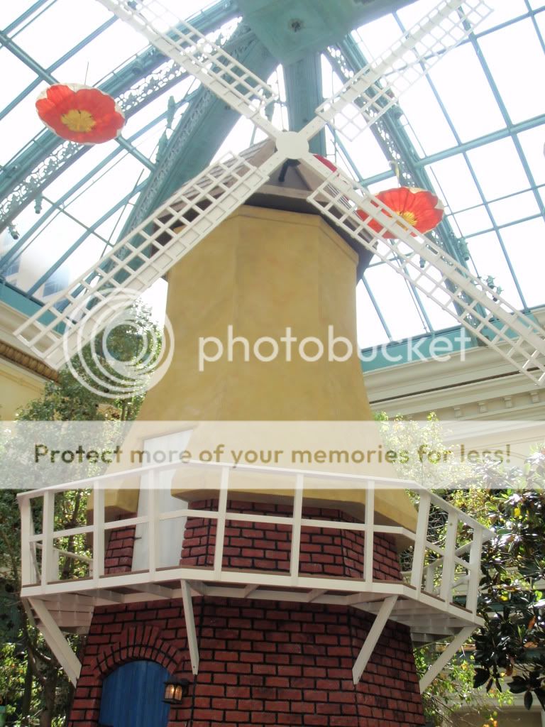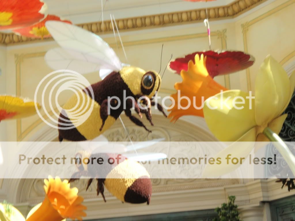 Ouch, where are my pharmaceuticals, my hair hurts. I shook off the cobwebs with a couple of cups of coffee and packed up my bags. I played some more roulette using my same betting pattern and hit #22 twice in a row. A guy at the table was betting like a madman, huge stacks of chips all over the board. He made several nice hits, but just couldn't pull himself away from the table with his winnings...gave it all back. Hitched a ride on the shuttle to Bally's and then walked(limped) over the Bellagio to check out the Spring display at the conservatory.