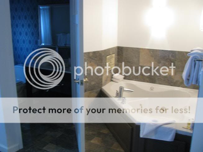The room comes with a Jacuzzi tub... unfortunately its one of those triangle shaped ones that only comfortably accommodates people who are too small to ride the roller coaster at Six Flags.