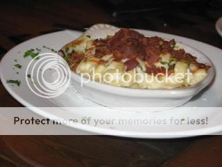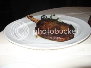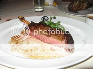 Our entrée was their signature pan seared, 22 ounce, bone-in ribeye that our waiter divided for us tableside. The steak was medium rare as requested, tender and delicious while our twice baked potato was tasty though overdone.