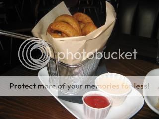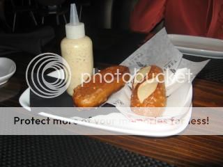 We received complimentary pretzel rolls and ordered the Sammy D Sampler that included lollipop Buffalo wings, walnut shrimp and Philly cheesesteak dumplings plus an order of O-rings (onion).