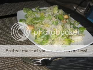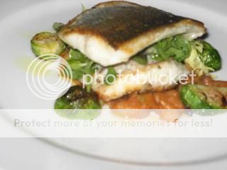 We each ordered the roasted loup de mer, Mediterranean sea bass with a bean ragout, roasted Brussels sprouts and bacon while sharing a Caesar salad and baker.