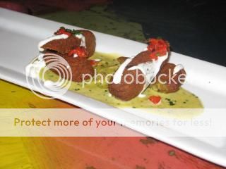 1) Alcapurras - Kobe beef, pacheta, sofrito, black currants, achiote, green banana, taro root croquetas, sofrito cream sauce. (lacked flavor, 2 Forks)