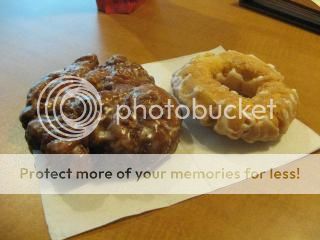 We drowned our sorrows at Ronald’s over a shared apple fritter and glazed buttermilk donut with a coffee for Ann and water for me. ($3.90, 3.5 Forks)