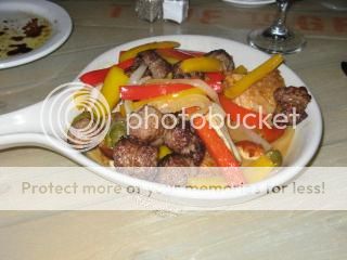 I ordered pollo scarpariello - oven roasted half chicken, topped with sautéed red, yellow bell peppers, hot & sweet Italian sausage and hot cherry peppers.