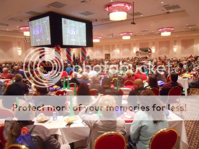 I headed over to the Aquarius and my room to put on my Super Bowl shirt and the wrist band and walked over to the Pavilion on the 3rd floor where invited guests were watching the big game. There was all sorts of free “football food” and open bars. I asked for some wings and a hot dog. They gave me a huge basket of about 15 wings and a quarter pound dog. I noticed that the portions of everything people asked for were enough for three people. I didn’t feel like drinking and stuck to diet soda, but everyone at my table had beers and drinks scattered all over the table. The crowd was mostly an Atlanta group and the first half cheers and horns blasted every time the Falcons scored. Many of the Patriot fans, sick of the first half, began to leave the room not taking the abuse. I left at half time (couldn’t eat any more food and the guy sitting next to me at the table decided I was his best friend and never stopped sharing his life story with me). Of course, all those Patriot fans got the last laugh. Being a baseball fan, I honestly didn’t care either way.