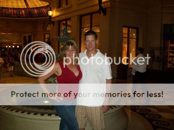 On the way to the Wynn I decided to stop at Bill's for two 99 cent margaritas. I had a giant water cup w/ice I poured them into so they stayed cold from Bill's to the Wynn. While there Tony noticed a roulette table was showing 7 black numbers in a row. I ran over there and threw $20 on red...a few other guys had black chips on red, so everyone felt like it was going to hit...and it did. I was excited, I got 20 of my originial 60 loss at bill's back. Woo-hoo.