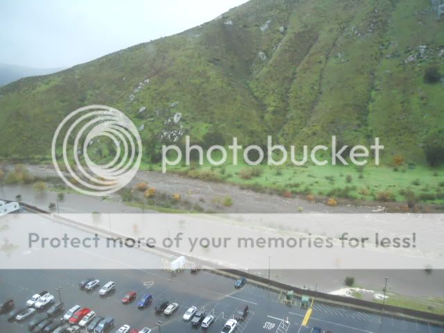 Had a very nice sleep outside of being woke up a couple of times, once when my neighbor kept trying his key in my door and later as a rainstorm was hitting against my window. The rain today has really picked up. I’m sure many of you have been seeing the reports from So Cal. Fortunately, there’s no flooding going on here. However, outside my window, the usual dry creek bed is now a rushing river—cool.