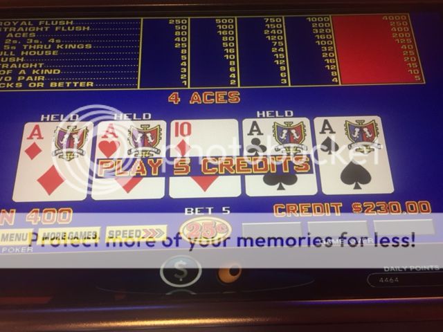 For those of you who have followed my posts for the past ten years or so, you know that I rarely had any “big hit” pictures, simply because for the past couple of years, I’ve had very few to post. Getting royals, straight flushes, and even quad Aces were few and far between. Well, this trip went the other direction. I hope you’ll indulge me as I post all of them from this trip. I had a pretty good run this time around.