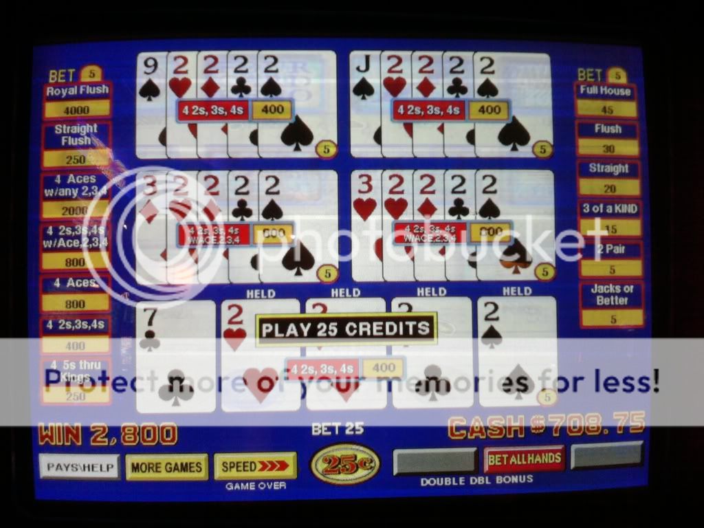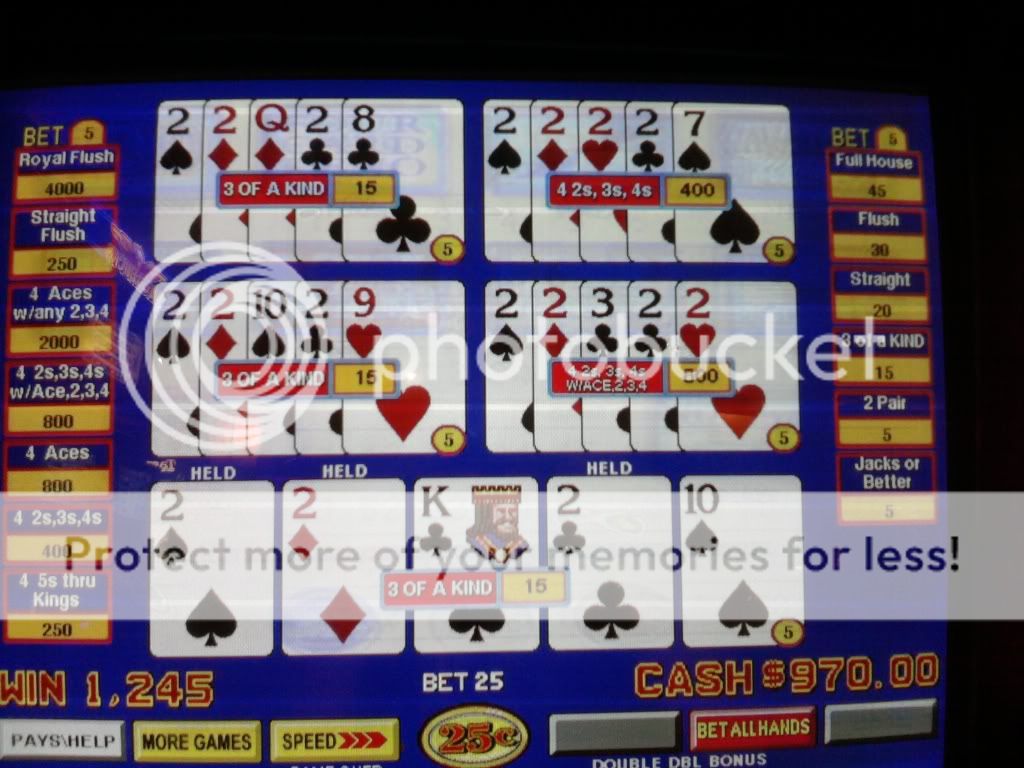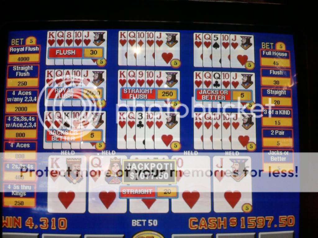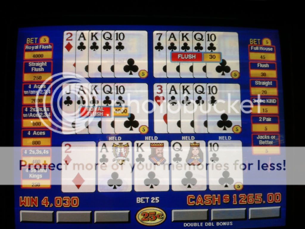 Up early and had the breakfast buffet. Not great but it works. Started playing on a 5-play machine on the back wall outside the high limit area. Played for a while and got this nice hand.