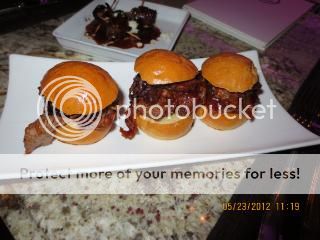 I had a $30 Groupon for LBS Burger in Red Rock Station that someone gave me that was set to expire this evening, but we were too exhausted to make the long drive so we settled on ½ priced tapas at Twin Creeks Steakhouse in the Silverton. We shared orders of bacon wrapped dates (4.5 Forks out of a possible 5), a trio of BBQ prime rib sliders (3 Forks) and piquillo peppers stuffed with garlic cream cheese w/marinara (2.5 Forks).